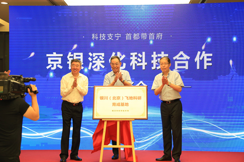 姜志刚、隋振江和方正辉共同为银川(北京)科研育成平台揭牌