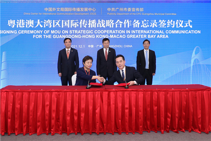 12月1日,中国外文局所属中国对外书刊出版发行中心(国际传播发展中心)与广州市委宣传部粤港澳大湾区国际传播战略合作签约仪式在2021年“读懂中国”国际会议(广州)期间举行。中国外文局局长杜占元,副局长陆彩荣和广州市委常委、宣传部长杜新山出席活动。