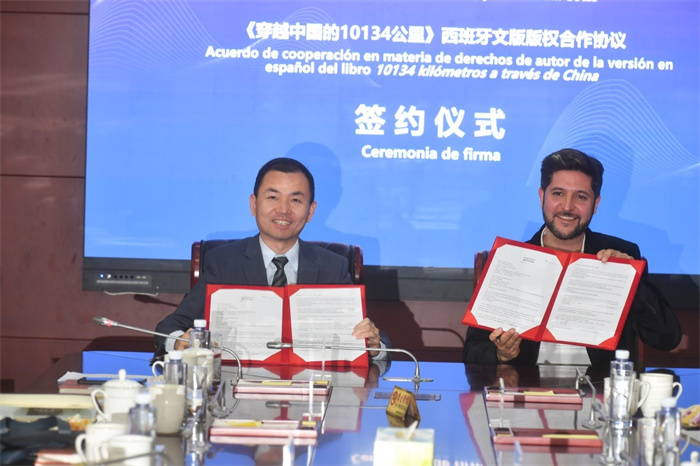 阿根廷仟雨出版社社长吉列尔莫·布拉沃出席活动,并与朝华出版社社长汪涛签署《穿越中国的10134公里》西班牙文版版权合作协议。