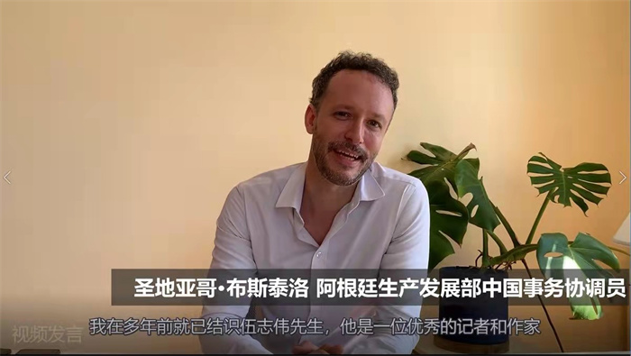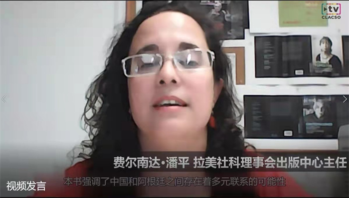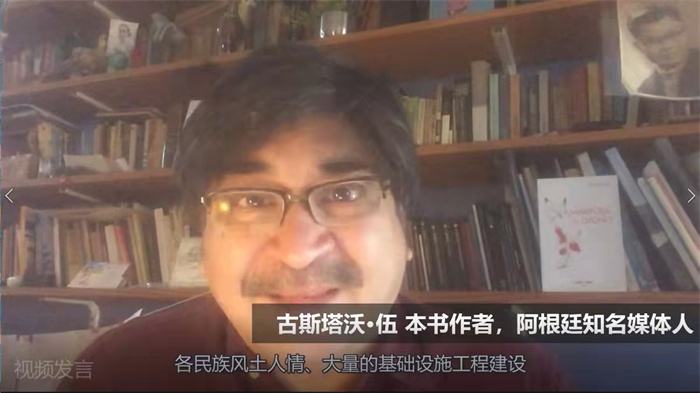 本书作者、阿根廷知名媒体人古斯塔沃·伍,阿根廷生产发展部中国事务协调员圣地亚哥·布斯泰洛,本书译者、新华社记者朱婉君,拉丁美洲社会科学理事会出版中心主任费尔南达·潘平通过视频进行发言。