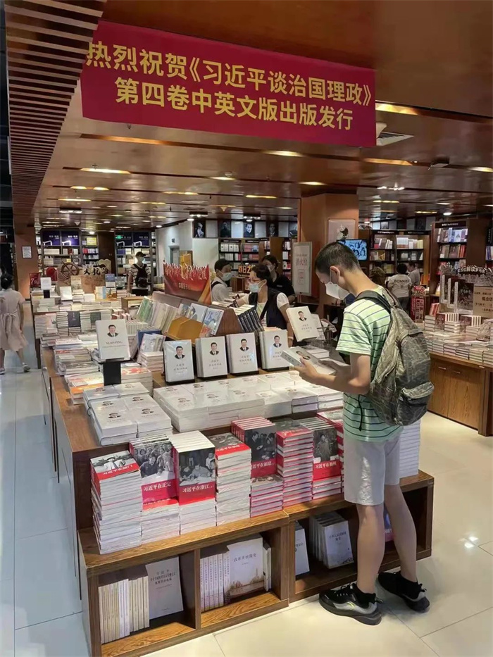 以下为《习近平谈治国理政》第四卷中英文版图书在浙江、江苏、安徽、福建、江西、山东主要书店上架销售及读者阅读的场面。
