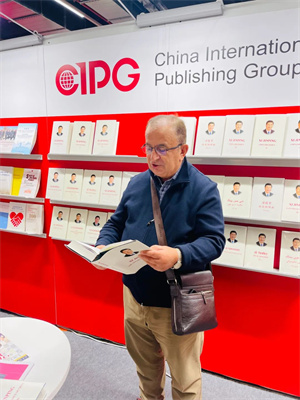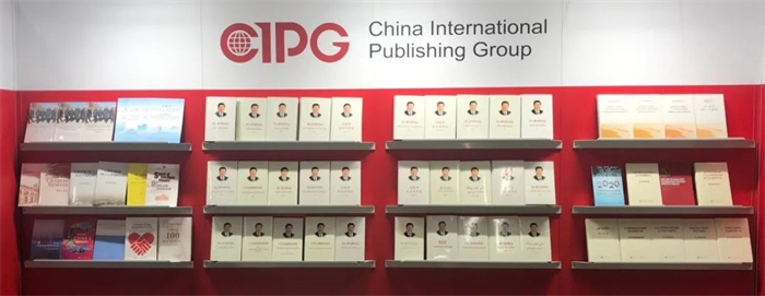 在展区显著位置设计的宣传墙上,中国外文局(中国国际传播集团)所属中国国际岀版集团重点展示了《习近平谈治国理政》第四卷中、英文版,同时展销的还有《习近平谈治国理政》第一至三卷以及《之江新语》《摆脱贫困》等习近平总书记著作多语种版。